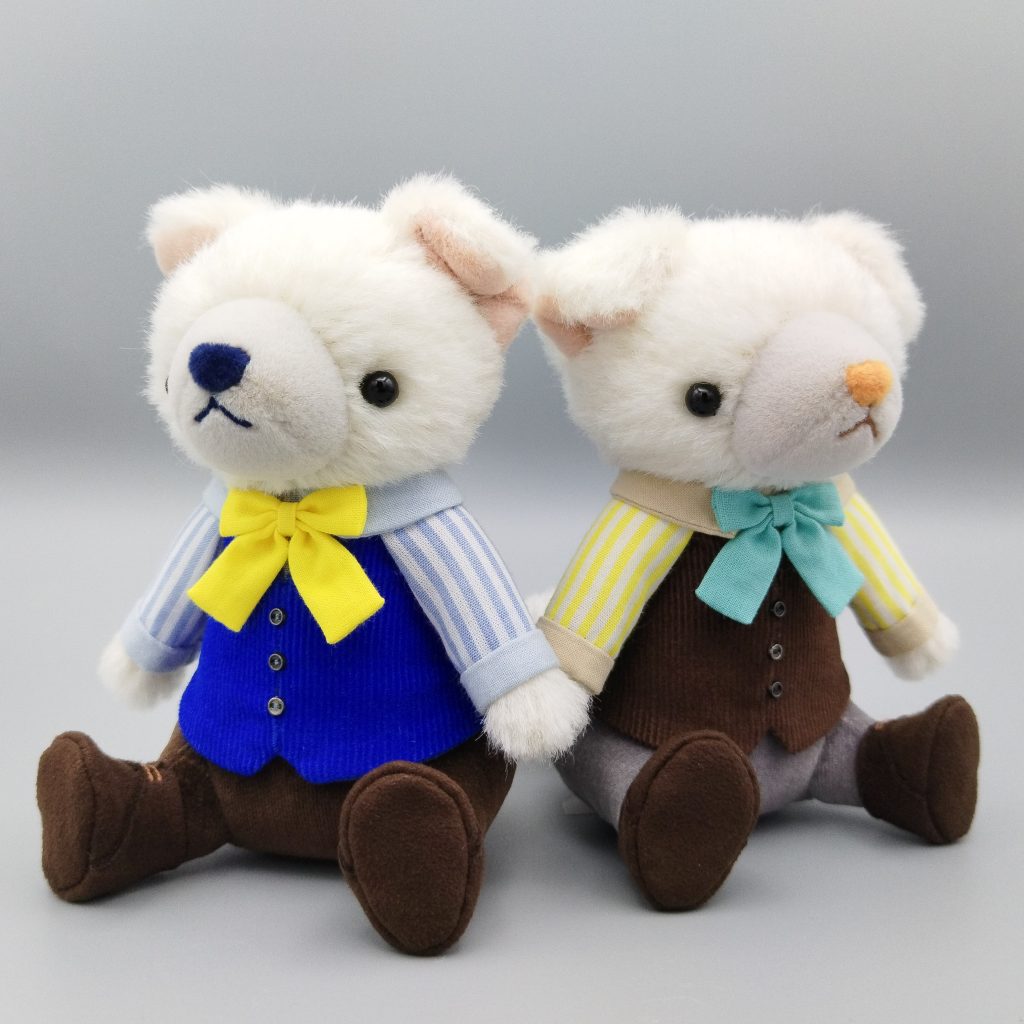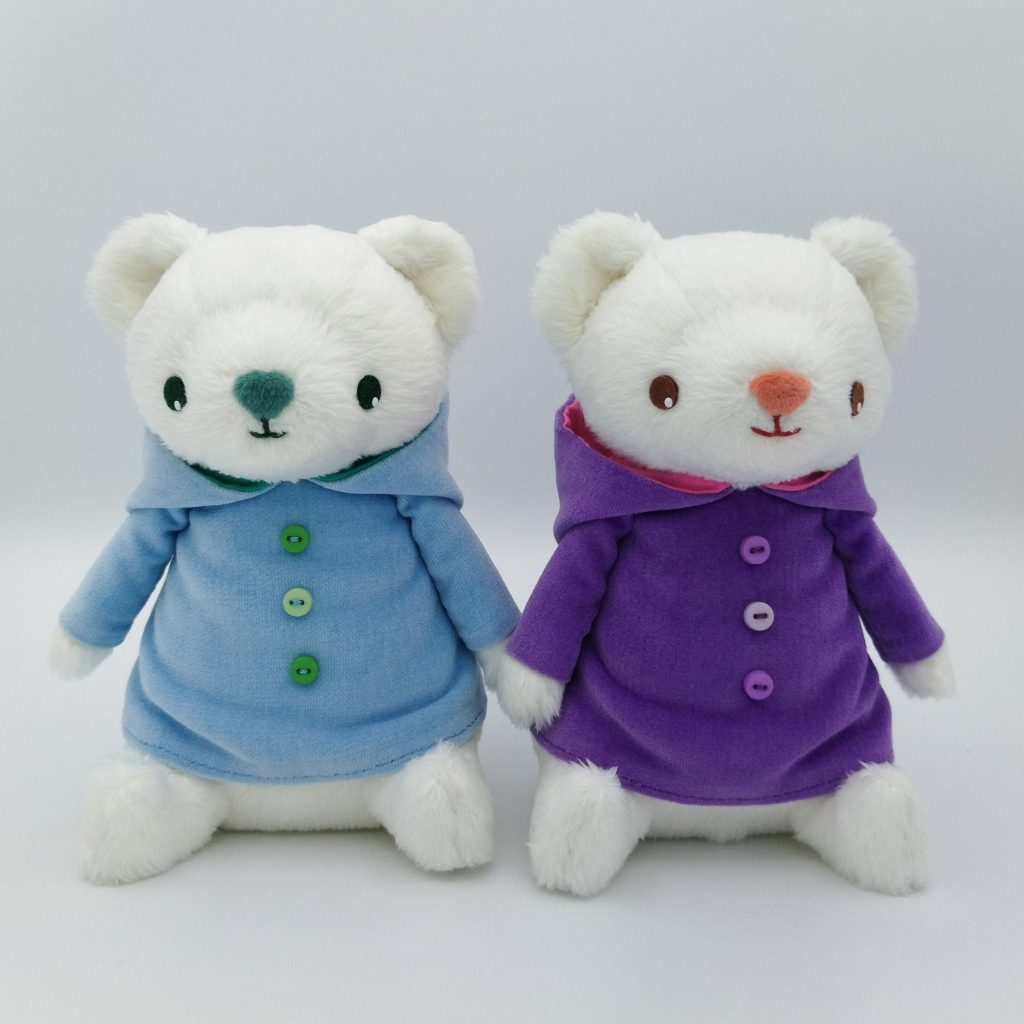 身体はアルパカ生地を使用。服のカラーは青系と黄色系の2種です。