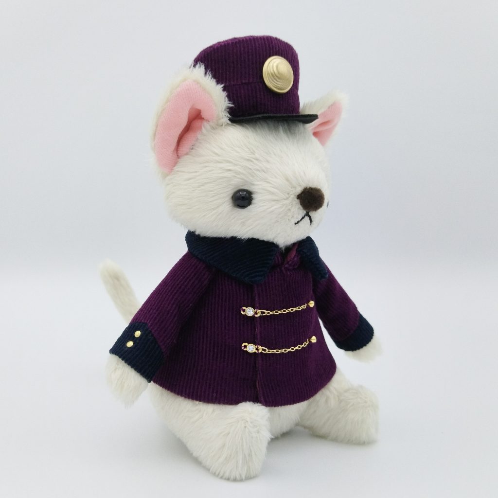 定番人気の車掌ねこ。今回は淡いベージュのボア生地を使用しています。